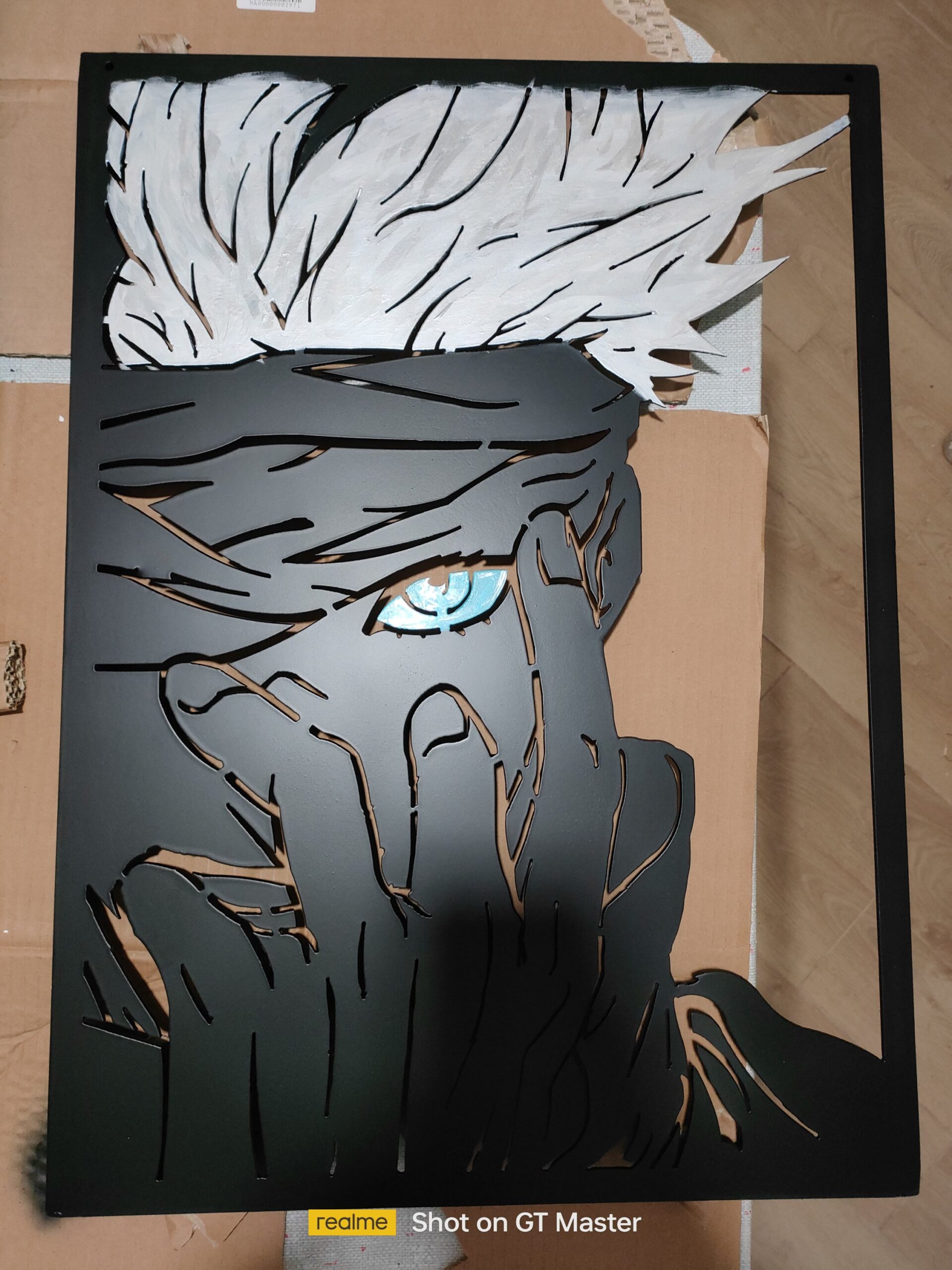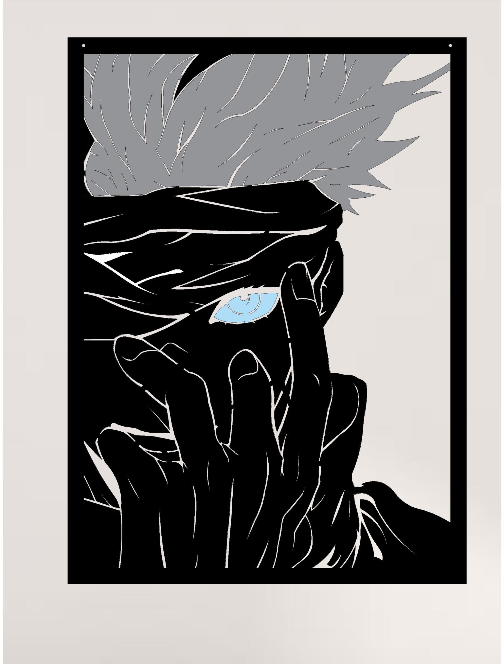 Quadro di Gojo con sfumature bianche platino nei capelli e azzurre nell’occhio per richiamare l’espansione del dominio, l’attivazione del vuoto incommensurabile 🔥